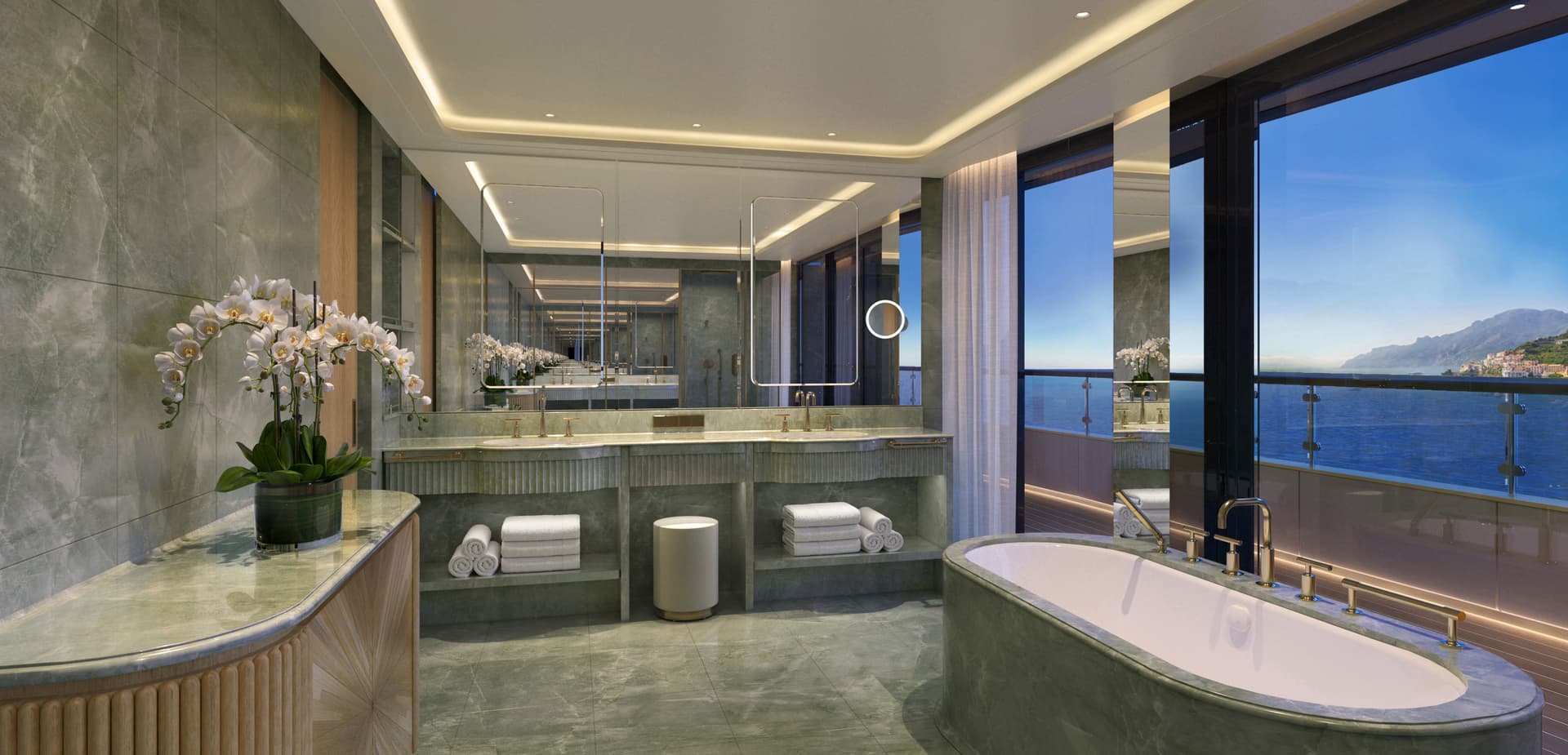 Our yacht incorporates a one-of-a-kind innovative wall system that enables suites to be expanded according to each guest's needs. An industry-first, this versatility unlocks over 100 different connecting options and the unique opportunity to reserve an entire side of a deck.
