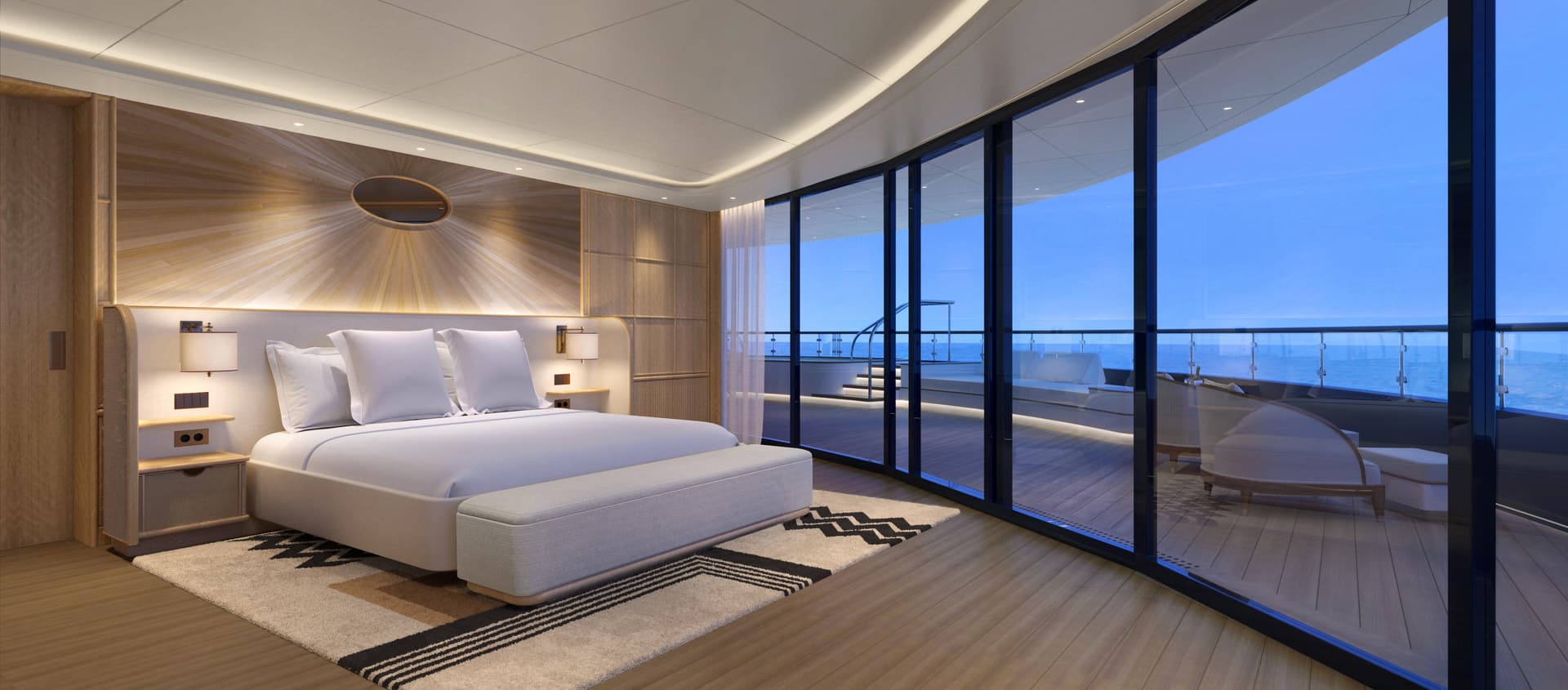 The heart and soul of our yacht is our 20-metre aft pool deck, which is inspired by the classic “Christina O” yacht. Soak up the sun and enjoy the seaside setting.